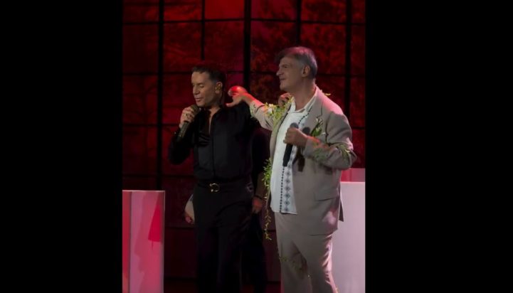 Ο Φοίβος Δεληβοριάς τον υποδέχθηκε στη σκηνή με μια σφιχτή αγκαλιά.