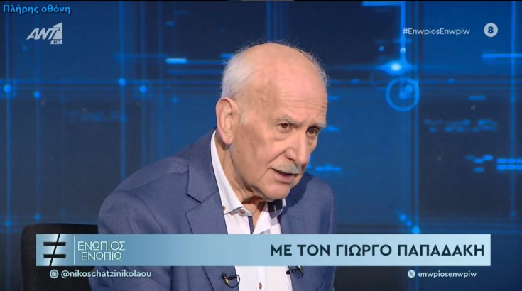Στην εκπομπή του Νίκου Χατζηνικολάου, «Ενώπιος Ενωπίω» που μεταδόθηκε το βράδυ της Πέμπτης, 22 Μαΐου, φιλοξενήθηκε ο Γιώργος Παπαδάκης. Ο έμπειρος δημοσιογράφος μίλησε για την πορεία του στην τηλεόραση, αναγνωρίζοντας τα λάθη που έχει κάνει, αναφερόμενος παράλληλα στις «εκρήξεις» που, όπως παραδέχτηκε, υπήρξαν αναπόφευκτες σε μια τόσο μακρά και απαιτητική επαγγελματική διαδρομή.