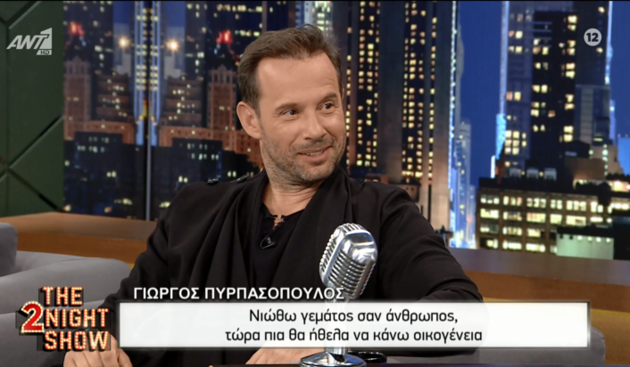 Είσαι γεμάτος; Τι άλλο έμεινε; Τον ρώτησε ο Γρηγόρης και ο ηθοποιός απάντησε “η οικογένεια μένει τώρα, έχω βρει τον καλύτερο άνθρωπο, είμαι φουλ ερωτευμένος” είπε ο Γιώργος Πυρπασόπουλος και συνέχισε: “είμαι έτοιμος”.