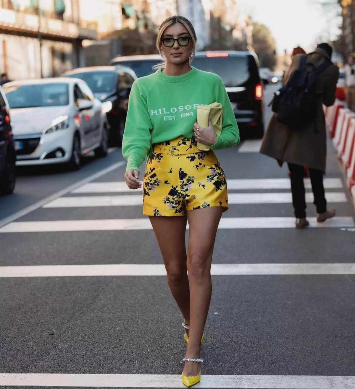 Λουλουδένιο σορτς: σε χρώμα έντονο και με fun διάθεση. Ένα από τα καλύτερα items της ανοιξιάτικης σεζόν, το κοντό σορτς ή βερμούδα δημιουργεί τα πιο ευδιάθετα outfits με χαρακτήρα και άποψη και τραβάει τα βλέμματα όλων στην street style πασαρέλα.
