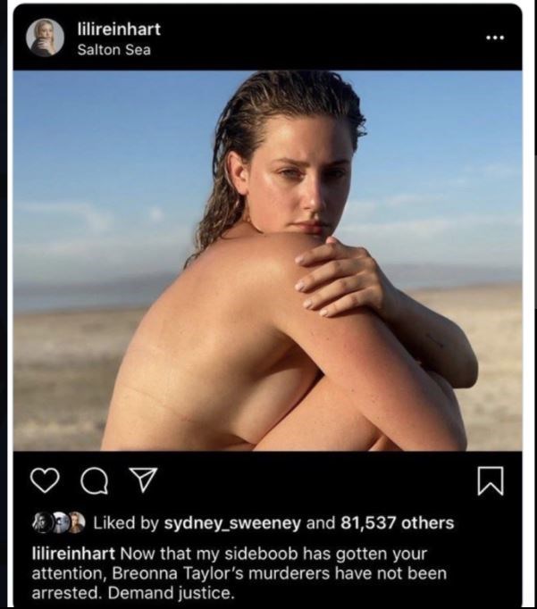 Σάλο προκάλεσε η Λίλι Ρέινχαρτ, πρωταγωνίστρια της σειράς Riverdale όταν ανήρτησε στον λογαριασμό της στο instagram μία γυμνόστηθη φωτογραφία της προκειμένου να ευαισθητοποιήσει όπως η ίδια ανέφερε σχετικά με την υπόθεση της Μπριόνα Τέιλορ, της κοπέλας που σκοτώθηκε από αστυνομικά πυρά μέσα στο ίδιο της το σπίτι στο Κεντάκι, νωρίτερα μέσα στον χρόνο.