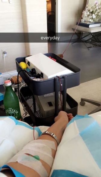 Μια φωτογραφία από τη θεραπεία στην οποία υποβάλλεται σχεδόν καθημερινά δημοσίευσε στον προσωπικό της λογαριασμό στο Snapchat, το γνωστό 19χρονο μοντέλο.
