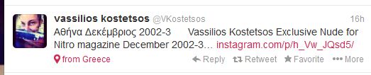 Ο Βασίλειος Κωστέτσος ανέβασε μία παλιά του φωτογραφία στο instagram, όπου ποζάρει γυμνός για το περιοδικό Nitro.