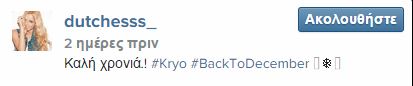 «Καλή χρονιά.! #Kryo #BackToDecember» έγραψε στη λεζάντα η παρουσιάστρια.