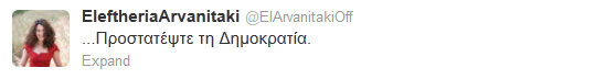 H δημοφιλής τραγουδίστρια Ελευθερία Αρβανιτάκη μέσα από το twitter της κατακεραυνώνει την επίθεση του Ηλ. Κασιδιάρη στην Λιάνα Κανέλλη και την Ρένα Δούρου.Διαβάστε τι έγραψε: