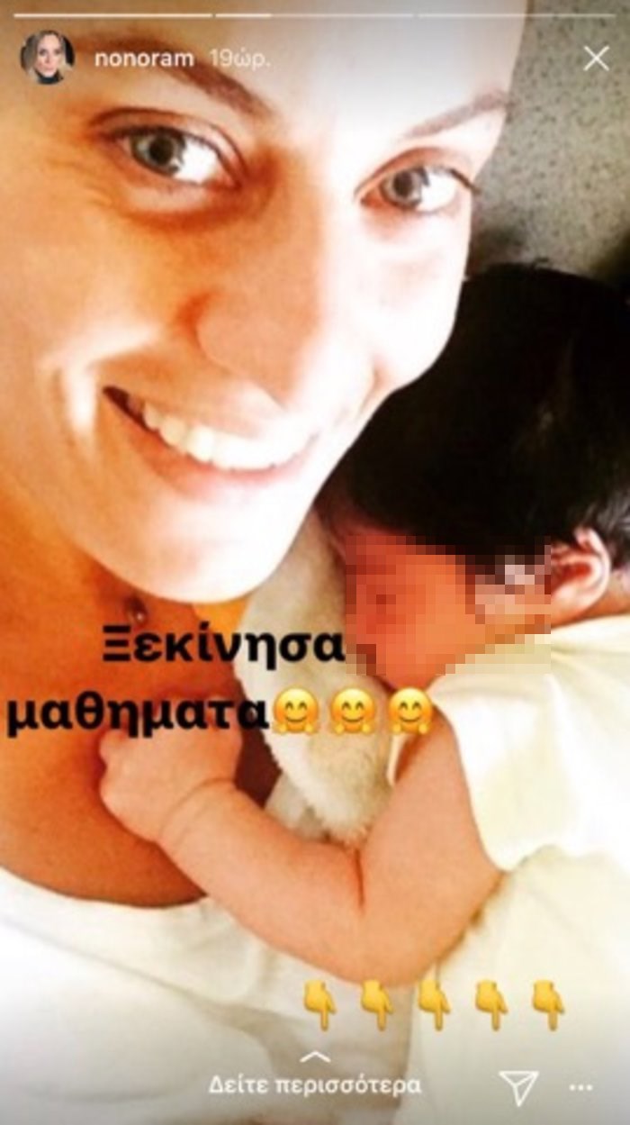 “Ξεκίνησα μαθήματα” έγραψε στη λεζάντα της φωτογραφίας στην οποία κρατά στην αγκαλιά της ένα μωράκι.