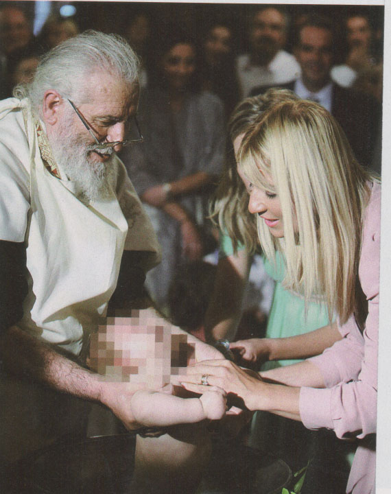 Η Φαίη φορούσε ένα ροζ φόρεμα του Dimitris Petrou και γόβες Prada και δεν έκρυψε το άγχος της για να μην κλάψει το βαφτιστήρι. Ο μικρός Γιώργος όμως δεν της έκανε το χατίρι και έκλαψε αρκετά, κάνοντας και την ίδια να βουρκώσει.