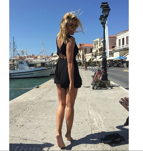 H Έλενα Παπαβασιλείου βρίσκεται στην Αίγινα και πόσταρε στο instagram μία φωτογραφία της φορώντας ένα καυτό μαύρο σορτσάκι όπου κάνει βόλτα ξυπόλυτη.