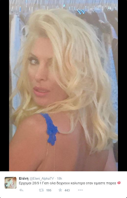 Η παρουσιάστρια πόσταρε μια “δυναμική” φωτογραφία της στο twitter, ανακοινώνοντας ότι επιστρέφει στους τηλεοπτικούς μας δέκτες στις 28 Οκτωβρίου.