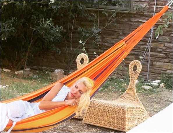 Μια φωτογραφία από τις καλοκαιρινές της διακοπές ανέβασε στο Ιnstagram, η Ελένη Μενεγάκη. Η όμορφη παρουσιάστρια ποζάρει χωρίς ίχνος μακιγιάζ, ενώ χαλαρώνει ξαπλωμένη στην αιώρα, φορώντας ένα λευκό φόρεμα και μια κίτρινη στέκα στα μαλλιά της.