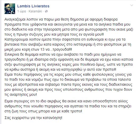 O γνωστός τραγουδιστής φανερά εκνευρισμένος τόνισε μεταξύ άλλων ότι η φωτογραφίση έγινε εν αγνοία του.