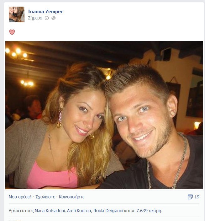 Η αγαπημένη του νεαρού Τόμας Πρωτόπαπα, Ιωάννα Ζεμπερλίγκου, ανέβασε μία φωτογραφία στον προσωπικό της λογαριασμό στο facebook.