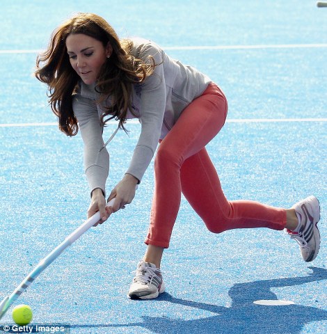H Δούκισσα του Κέιμπριτζ, Kate Middleton αρχίζει τη μέρα της πολύ νωρίς, αφού η αντζέντα της είναι γεμάτη!Πρώτος της σταθμός χθες το πρωί, το Ολυμπιακό Πάρκο στο Στάτφορντ για να δει απο κόντά τη γυναικεία ομάδα του χόκεϊ. Κι όχι μόνο είδε τις αθλήτριες αλλα έπαιξε και χόκεϊ! Όπως αναφέρουν τα διεθνή μέσα, είχε να ασχοληθεί με αυτό πολλά χρόνια, αλλά όπως φαίνεται το διασκέδασε! Φορώντας ένα γκρι αθλητικό ζακετάκι κι ένα στενό κοραλλί παντελόνι απέδειξε πως έχει την κομψότητα στο αίμα της!