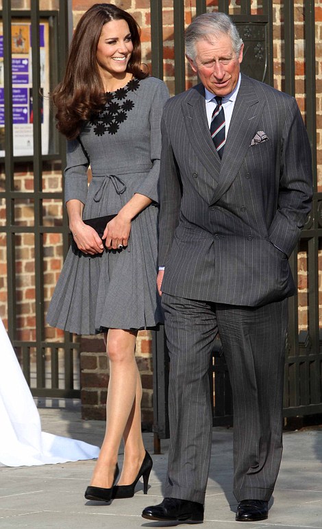 Στη συνέχεια άλλαξε, φόρεσε ένα κομψό γκρι φόρεμα και συνόδευσε για πρώτη φορά, τον πεθερό της, πρίγκιπα Charles στο “Prince’s Foundation for Children and the Arts”.