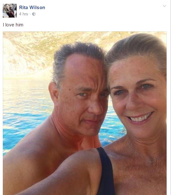«Τον αγαπώ», έγραψε η Ρίτα Γουίλσον συνοδεύοντας τη φωτογραφία που δημοσίευσε στον προσωπικό της λογαριασμό στο Facebook.