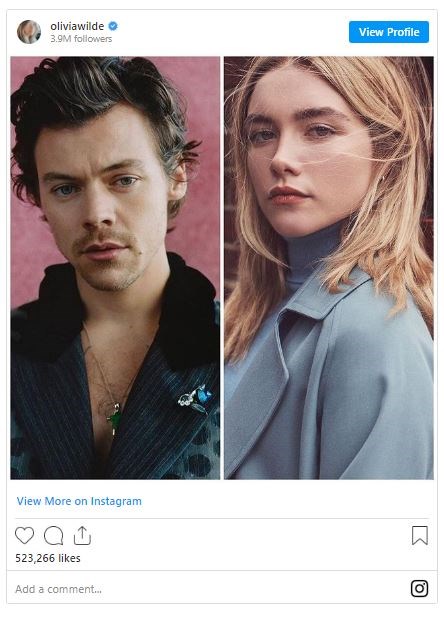 Η γνωριμία τους ξεκίνησε τον Σεπτέμβριο του 2020, όταν ο Styles αντικατέστησε τον Shia LaBeouf στη νέα ταινία “Don’t Worry, Darling”. Με σκηνοθέτη τη γνωστή ηθοποιό, ξεκίνησαν τα γυρίσματα. Η προσθήκη του 27χρονου τραγουδιστή στο cast ενθουσίασε την Olivia. “Ο Harry τρέφει μεγάλη αγάπη για τη μόδα. Δεδομένου ότι αυτή η ταινία είναι ιδιαίτερα στιλιστική, είμαστε πολύ χαρούμενοι για τη συμμετοχή του”, είχε αποκαλύψει τότε η ίδια στον Τύπο.
