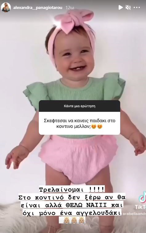 Η Αλεξάνδρα Παναγιώταρου ρωτήθηκε για την καλή σχέση που έχει με τον πρώην σύζυγό της και απάντησε: “Πολλές φορές οι σχέσεις των ανθρώπων αλλάζουν μορφή ωστόσο η αγάπη αν είναι αληθινή δεν σταματάει ποτέ”. Ακόμη, ρωτήθηκε εάν σκέφτεται να κάνει ένα παιδάκι στο κοντινό μέλλον. “Τρελαίνομαι. Στο κοντινό δεν ξέρω αν θα είναι, αλλά θέλω ναι και όχι μόνο ένα αγγελουδάκι”.