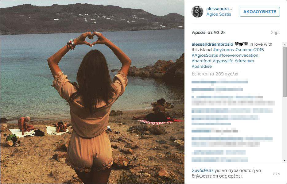 Στη Μύκονο με την οικογένειά της βρίσκεται η Αλεσάντρα Αμπρόσιο εδώ και μία εβδομάδα και δεν σταματά να δείχνει την αγάπη της για το νησί των ανέμων.