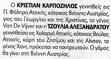 Η αγγελία του γάμου της, το αποδεικνύει.