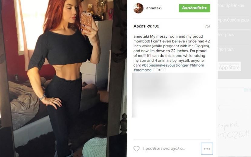 Η τραγουδίστρια δηλώνει περήφανη για την υπερβολικά αδύνατη μέση της, γράφοντας στο Instagram: «Είμαι περήφανη που από τις 42 ίντσες όταν ήμουν έγκυος η μέση μου έφτασε τις 22 ίντσες! Είμαι περήφανη για μένα. Αφού εγώ τα κατάφερα μόνη μου μεγαλώνοντας ταυτόχρονα ένα παιδί και τέσσερα ζώα, όλοι μπορούν!».