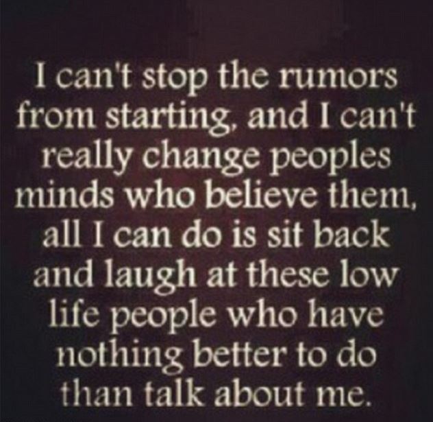 (Δεν μπορώ να σταματήσω τις φήμες και δεν μπορώ να αλλάξω το μυαλό των ανθρώπων που τις πιστεύουν. Το μόνο που μπορώ να κάνω είναι να καθίσω πίσω και να γελάω με τους ανθρώπους, που έχουν “αδιάφορη ζωή” και που δεν έχουν τίποτα καλύτερο να κάνουν από το να μιλούν για μένα).