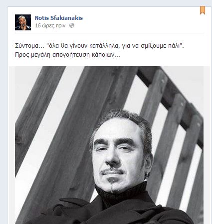 Ο τραγουδιστής έγραψε στο facebook: “Σύντομα “όλα θα γίνουν κατάλληλα, για να σμίξουμε πάλι”. Προς μεγάλη απογοήτευση κάποιων…”.
