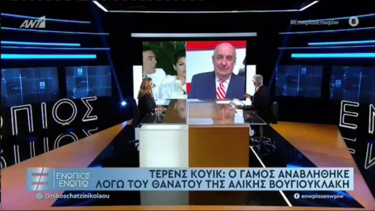 Εκτός από την Άντζελα Γκερέκου, στο Ενώπιος Ενωπίω «φιλοξενήθηκε» και ο Δημοσιογράφος Τέρενς Κουίκ, ο οποίος κλήθηκε να μιλήσει για τους κουμπάρους του, Τόλη και Άντζελα αποκαλύπτοντας αρχικά ότι ο γάμος αναβλήθηκε για ένα μήνα.