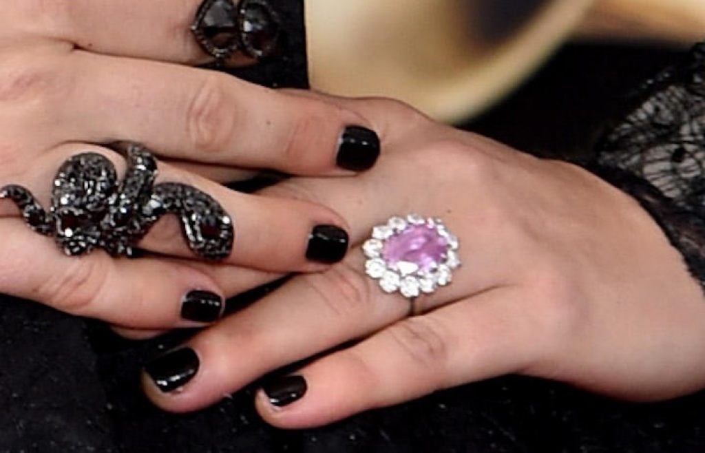 «Ένα φυσικό ροζ διαμάντι αυτού του κορεσμού και του μεγέθους είναι πολύ σπάνιο, κοστίζει πάνω από 1 εκατομμύριο δολάρια» ανέφερε η Μάνεϊ. «Αν είναι φτιαγμένο με ροζ ζαφείρι υψηλής ποιότητας, αυτό το δαχτυλίδι κοστίζει πάνω από 100.000 δολάρια, ανάλογα με τα χαρακτηριστικά του συγκεκριμένου πολύτιμου λίθου» σημείωσε.