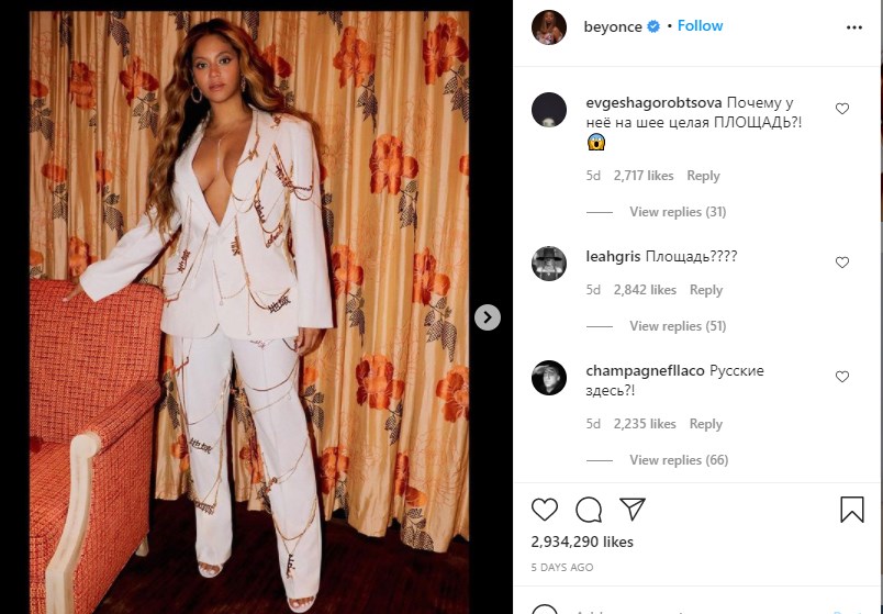 Η Queen B συνδυάζει το λευκό κοστούμι, τα οποίο είναι από την Spring/Summer 2020 συλλογή του avant-garde nyc brand Area, με ένα ζευγάρι λευκά σανδάλια, μια λεπτή αλυσίδα γύρω από τον λαιμό της καθώς και με λαμπερά σκουλαρίκια και μεγάλα 70ς γυαλιά ηλίου. Και μπορεί η ίδια να μην έβαλε καμία περιγραφή στα posts της, αλλά όπως λένε και στην άλλη πλευρά του Ατλαντικού: a picture is worth a thousand words.