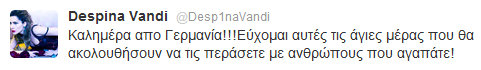 Η Δέσποινα Βανδή είναι στη Γερμανία για τις προγραμματισμένες συναυλίες της! Τι έγραψε στο twitter της;