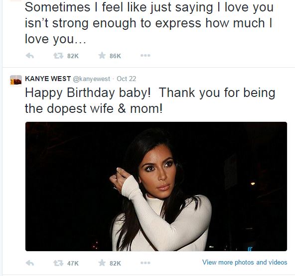 Ο Κάνιε Γουέστ έστειλε τις ευχές του μέσω twitter στην σύζυγό του Κιμ Καρντάσιαν για τα γενέθλιά της.