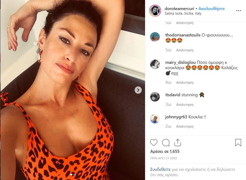 Τη φωτογραφία την ανέβασε πριν από μία ημέρα από το νησί Salina στη Σικελία και όπως ήταν αναμενόμενο τα θετικά σχόλια για την ομορφιά της και το σέξι κορμί της έπεσαν… βροχή.