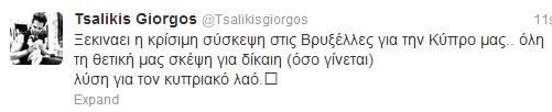 Ο Γιώργος Τσαλίκης έχει ιδιαίτερη αδυναμία στην Κύπρο και δεν σταματά να στέλνει τις ευχές του και τη θετική του ενέργεια, λίγο πριν ξεκινήσει το κρίσιμο Eurogroup.