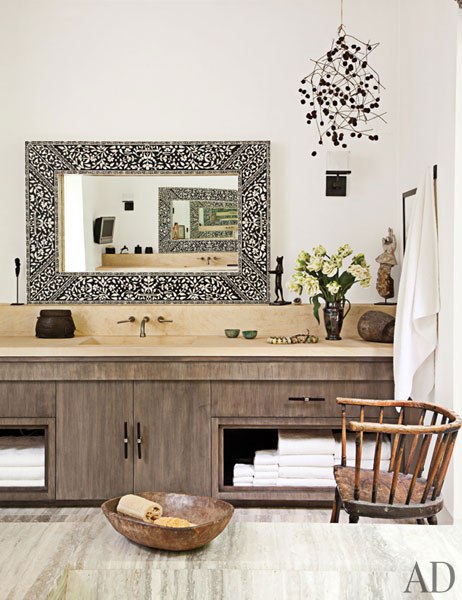 Ζεστά γήινα χρώματα, ξύλο και γυαλί αποκαλύπτουν τον αυθόρμητο και ανοιχτό χαρακτήρων των ιδιοκτητών. Στο εξωτερικό ο κήπος με τη λίμνη και η πισίνα προκαλούν ζηλόφθονα βλέμματα.
