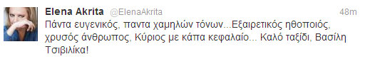 Η Έλενα Ακρίτα αποχαιρετά το μεγάλο μας ηθοποιό Βασίλη Τσιβιλίκα, που έφυγε ξαφνικά από την ζωή σήμερα το πρωί.Δείτε τι έγραψε: