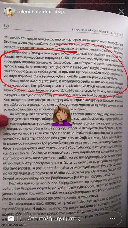 Σε insta story αποκάλυψε η Ελένη Χατζίδου το φύλο του μωρού που περιμένει. Η ίδια ανέβασε φωτογραφία από τη σελίδα του βιβλίου εγκυμοσύνης που διαβάζει και κυκλώνει το σημείο που μιλά για τις εγκυμονούσες που περιμένουν κοριτσάκι. Οπότε εμμέσως πλην σαφώς μοιράστηκε με τους διαδικτυακούς της φίλους τη χαρά της.
