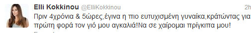 Η Έλλη Κοκκίνου σαν σήμερα, το 2008, έφερε στον κόσμο τον μονάκριβο γιο της, τον Αλέξανδρο. Έγραψε στο twitter της: