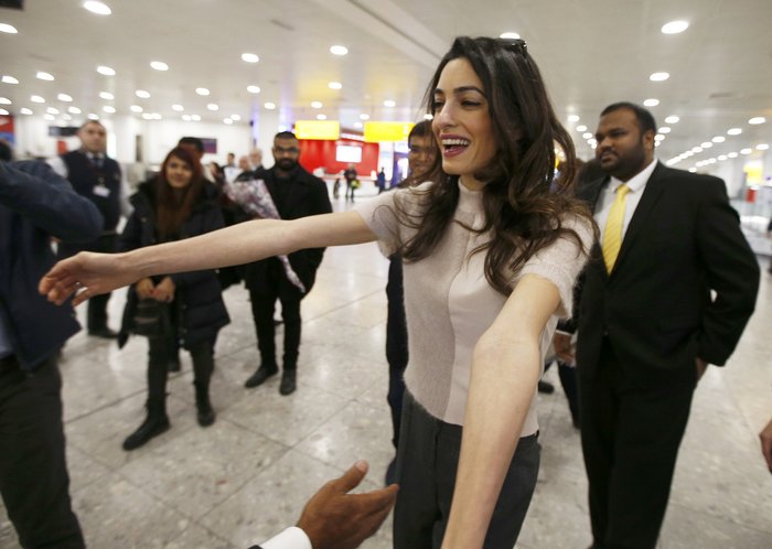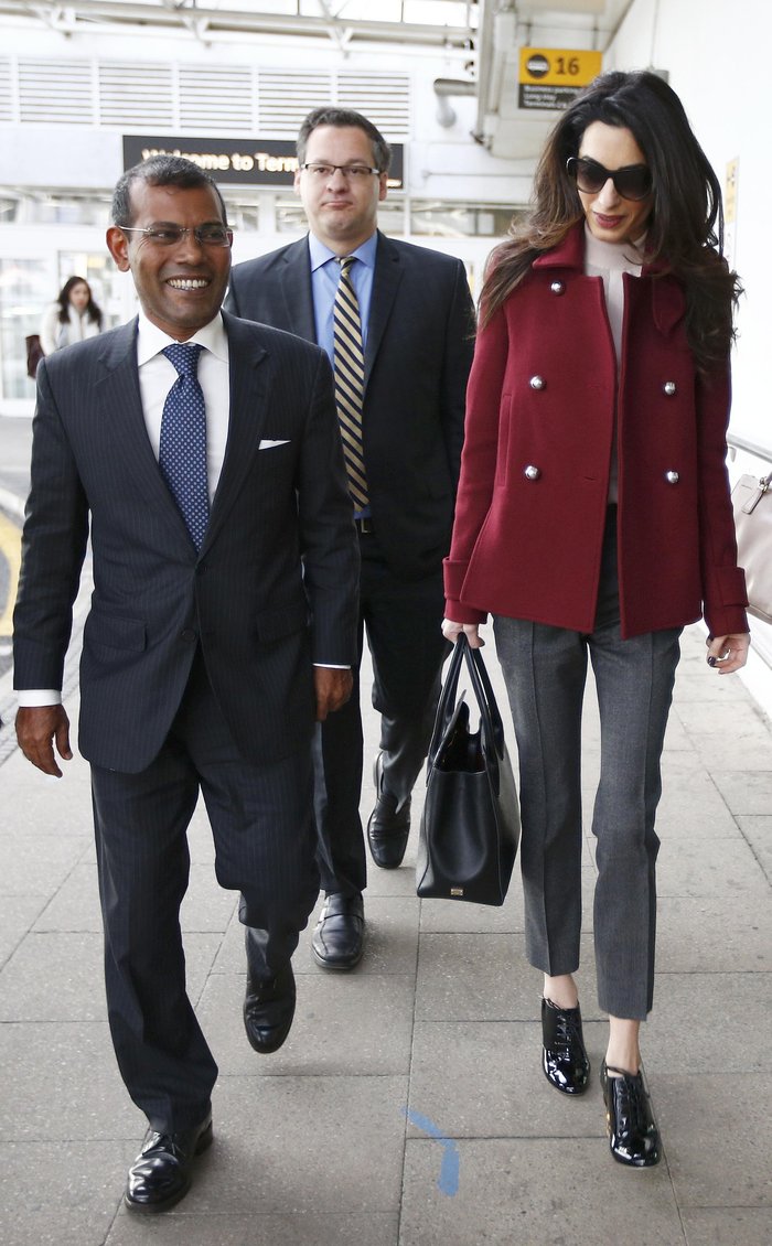 Η δικηγόρος Αμάλ Αλαμουντίν-Κλούνεϊ βρέθηκε στο αεροδρόμιο του Λονδίνου για να υποδεχτεί τον έκπτωτο πρόεδρο των Μαλδίβων Mohamed Nasheed.