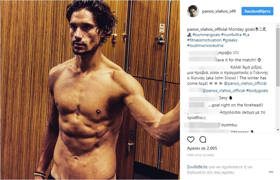 Τους διαδικτυακούς του φίλους εντυπωσίασε με το καλογυμνασμένο του σώμα, ο Πάνος Βλάχος. Ο ηθοποιός που ζει και εργάζεται πλέον στην Αμερική, ανέβασε στον προσωπικό του λογαριασμό στο Instagram μια ημίγυμνη φωτογραφία του, στην οποία μας δείχνει τους κοιλιακούς του.Όπως ήταν φυσικό, τα likes και το κολακευτικά σχόλια από τους ακολούθους του «έπεσαν βροχή». Δείτε την ανάρτηση: