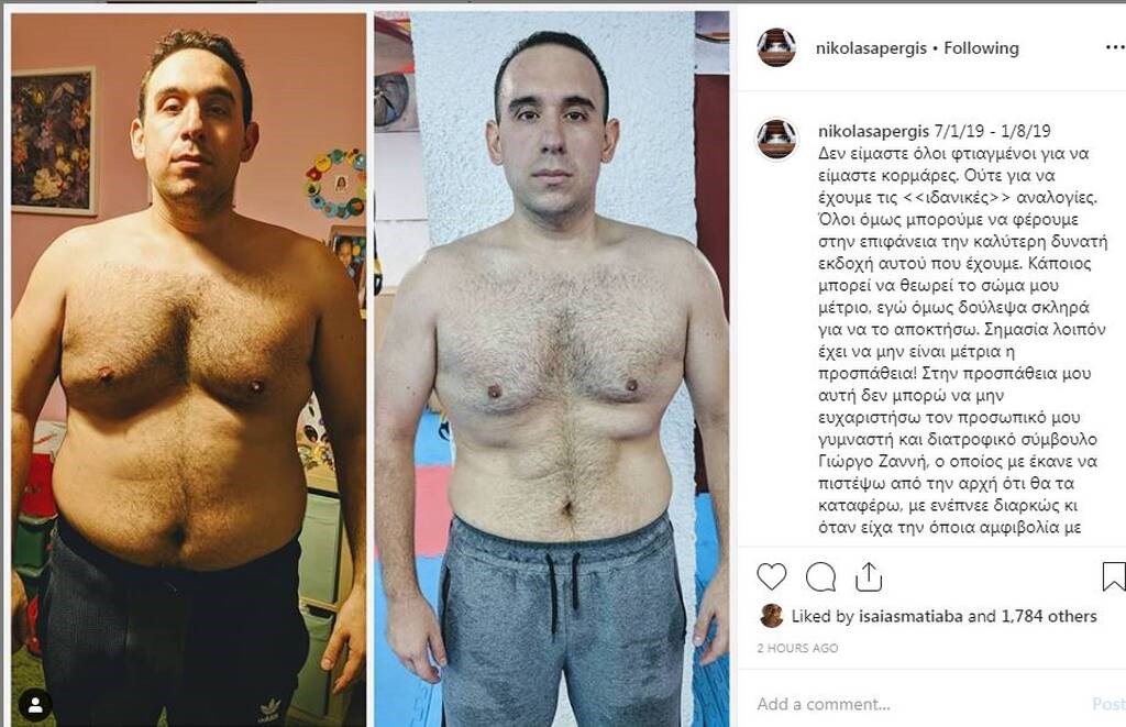 Ο ίδιος δημοσίευσε δύο φωτογραφίες μέσα από τον προσωπικό του λογαριασμό στο instagram και μας έδειξε το πριν και το μετά και έγραψε χαρακτηριστικά: