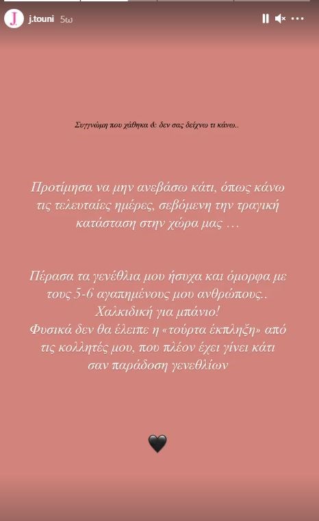 “Χθες λοιπόν έγινα 28. Συγγνώμη που χάθηκα και δεν σας δείχνω τι κάνω. Προτίμησα να μην ανεβάσω κάτι, όπως κάνω τις τελευταίες ημέρες, σεβόμενη την τραγική κατάσταση στη χώρα μας.