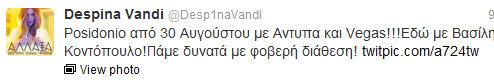 Η Δέσποινα Βανδή επιβεβαίωσε τη συνεργασία της με τον Αντύπα και τους Vegas.Έγραψε στο twitter της…