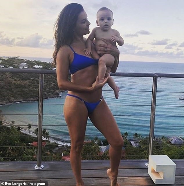 Η Εύα Λονγκόρια γιόρτασε την εθνική ημέρα μπικίνι φορώντας ένα καυτό μπλε μαγιό και ποζάροντας πανευτυχής με τον 12 μηνών γιο της Σαντιάγο, στην αγκαλιά.