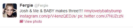 Η τραγουδίστρια των Black Eyed Peas, Fergie, αποκάλυψε την εγκυμοσύνη της μέσω twitter. Έγραψε: