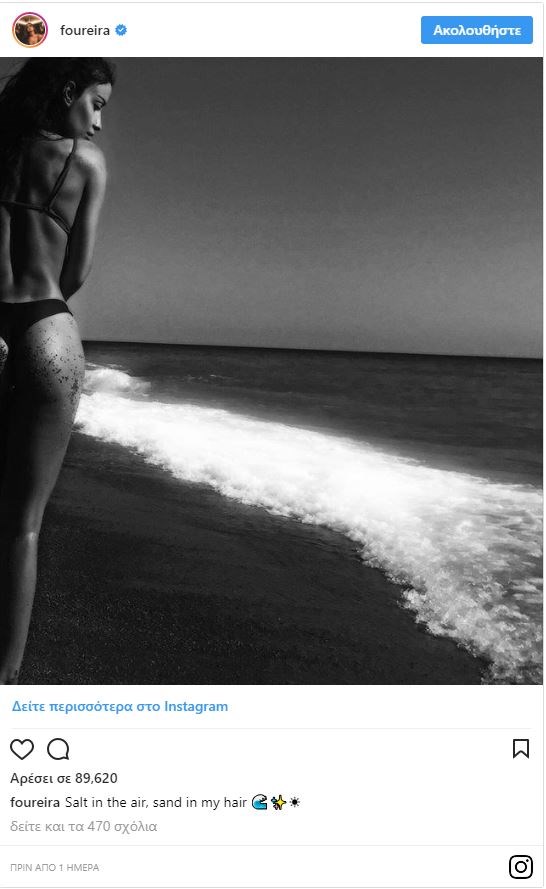 «Αλάτι στον αέρα, άμμος στα μαλλιά μου» έγραψε δίπλα στη φωτογραφία και τα likes όπως και τα σχόλια έπεσαν “βροχή”.
