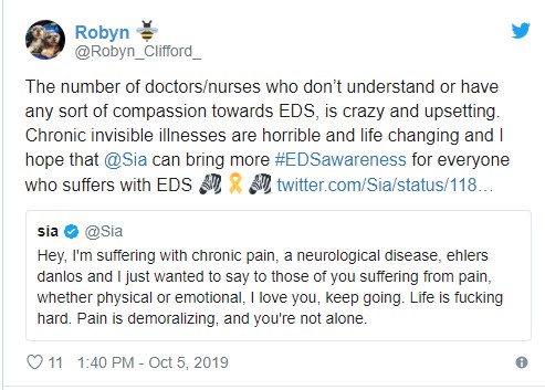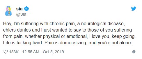 Η Sia αποκάλυψε μέσω του λογαριασμού της στο twitter ότι πάσχει από νευρολογική ασθένεια.