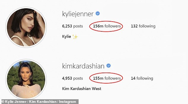 Ήταν τον Οκτώβριο που η Κιμ πανηγύριζε τους 150 εκατομμύρια ακολούθους νικώντας την Κάιλι με τους 148, αν και σε έρευνα που πραγματοποιήθηκε το 44% των ακολούθων της είναι ψεύτικα προφίλ σε σχέση με το 31% των ακολούθων της Κάιλι.