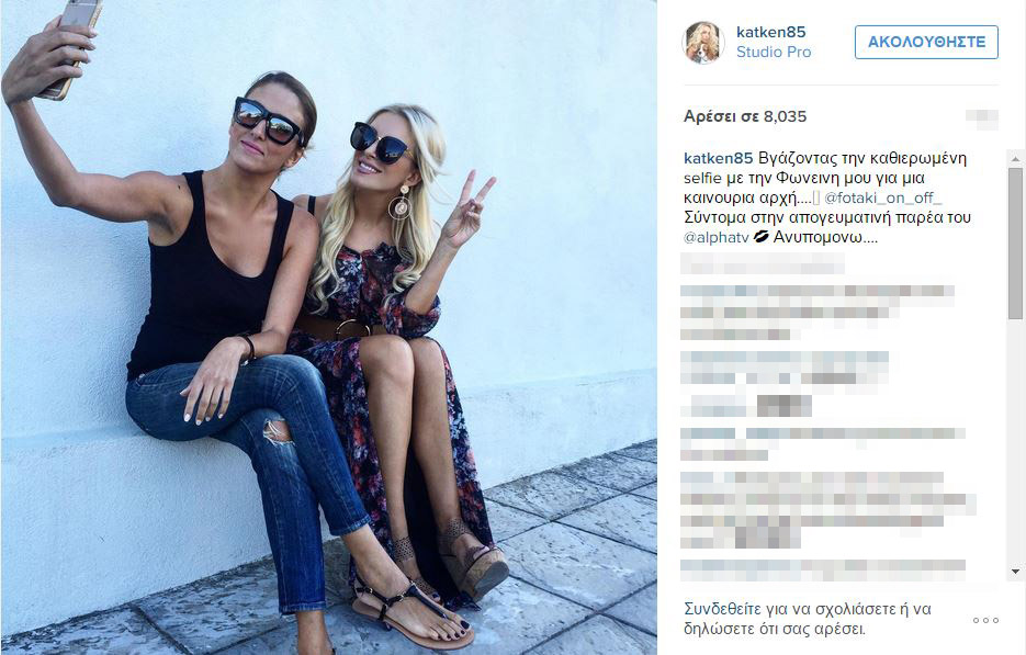 Η παρουσιάστρια πόζαρε με την Φωτεινή Πετρογιάννη που παρουσίαζε την περασμένη σεζόν την εκπομπή «Η γειτονιά μας» με τον Δημήτρη Μάρκο και σχολίασε: «Βγάζοντας την καθιερωμένη selfie με την Φωτεινή μου για μια καινούρια αρχή…. Σύντομα στην απογευματινή παρέα του Alpha. Ανυπομονώ».