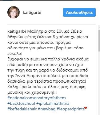 Η Καίτη Γαρμπή είναι μαθήτρια στο Εθνικό Ωδείο Αθηνών, και μάλιστα δημοσίευσε και μία φωτογραφία στον προσωπικό της λογαριασμό στο instagram, όπου το αποδεικνύει!