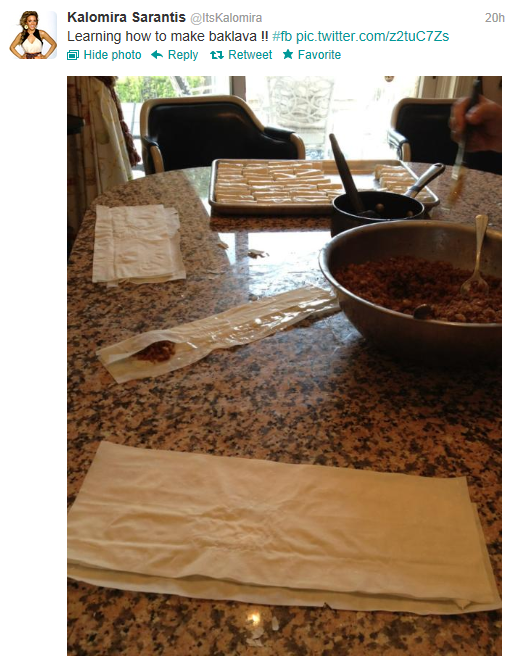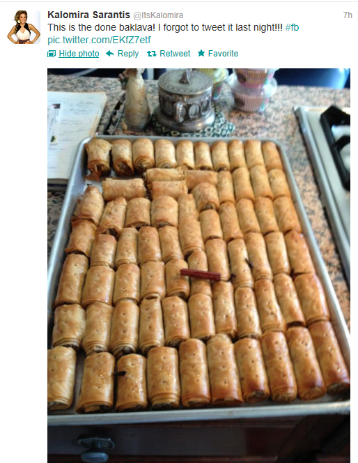 Ενώ σήμερα, πόσταρε φωτογραφία από το αποτέλεσμα που μάλλον τη δικαίωσε, αναφέροντας:”Αυτός είναι ο μπακλαβάς! Ξέχασα να το tweetάρω χθες το βράδυ!”
